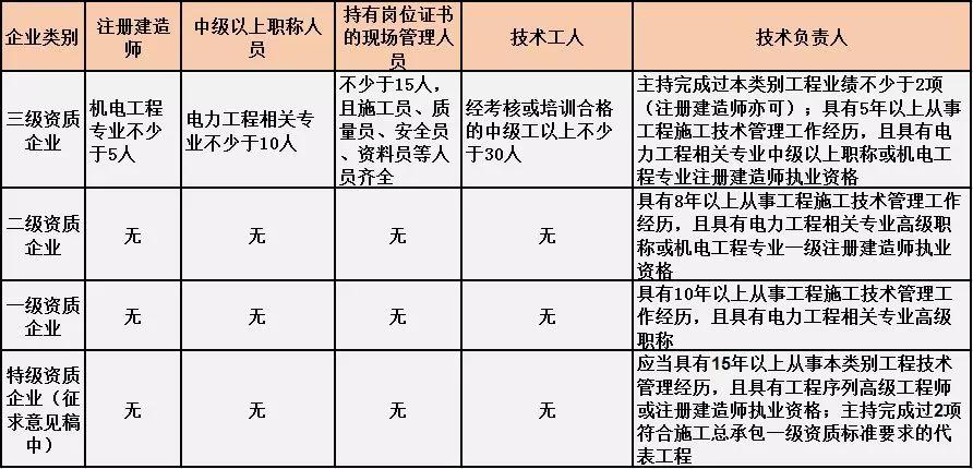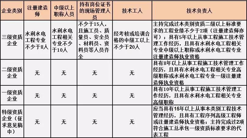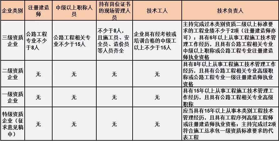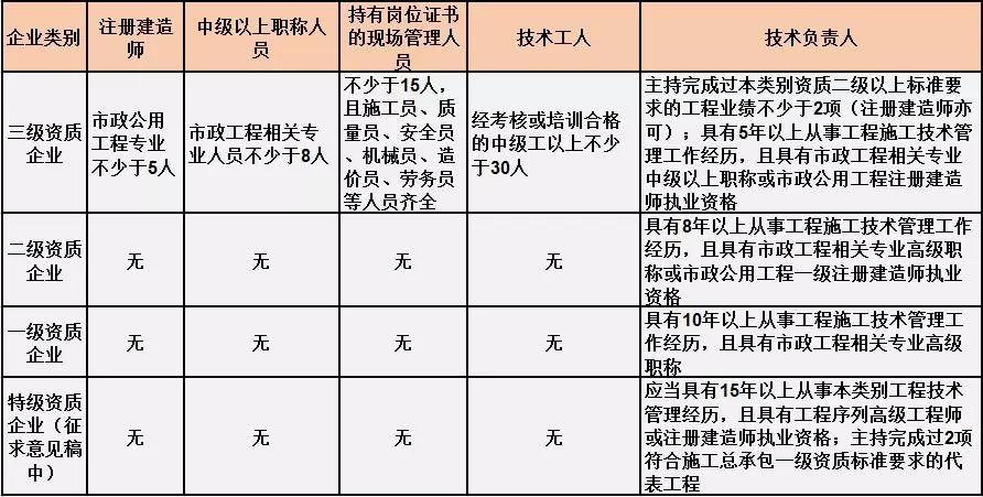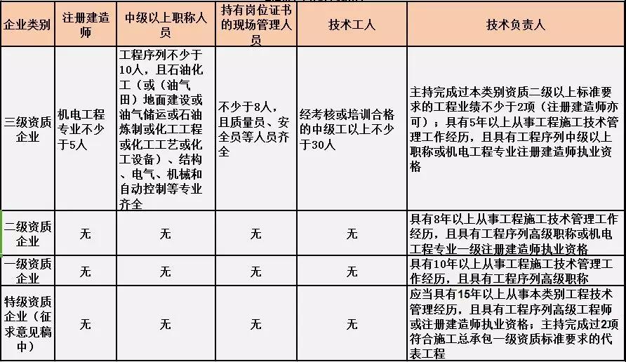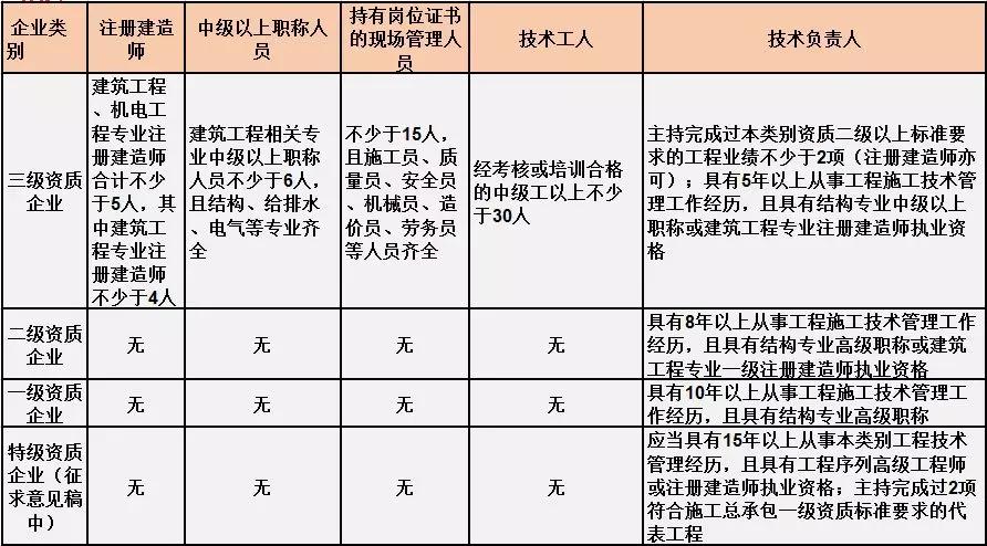 換句話說(shuō),并不是所有企業(yè)資質(zhì)都不要求有建造師等企業(yè)人員。施工總承包三級(jí)資質(zhì)企業(yè)對(duì)建造師等人員仍有要求,一級(jí)資質(zhì)、二級(jí)資質(zhì)企業(yè)保留技術(shù)負(fù)責(zé)人這一項(xiàng)要求,特級(jí)資質(zhì)另有規(guī)定。