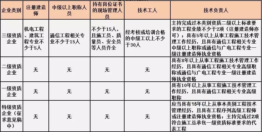 通信工程施工總承包人員要求